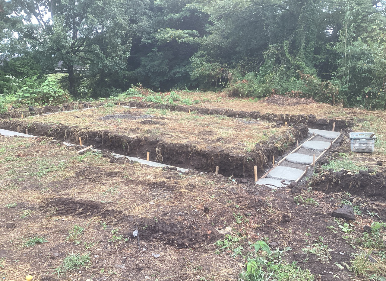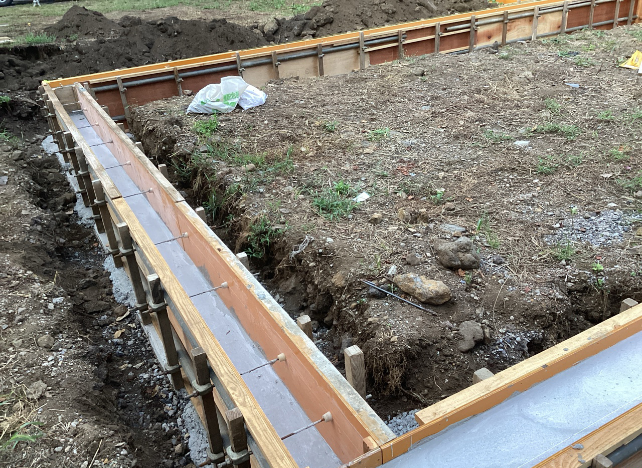 まずは地盤整地・根切り作業を行い、型枠を組んでコンクリートを打設。