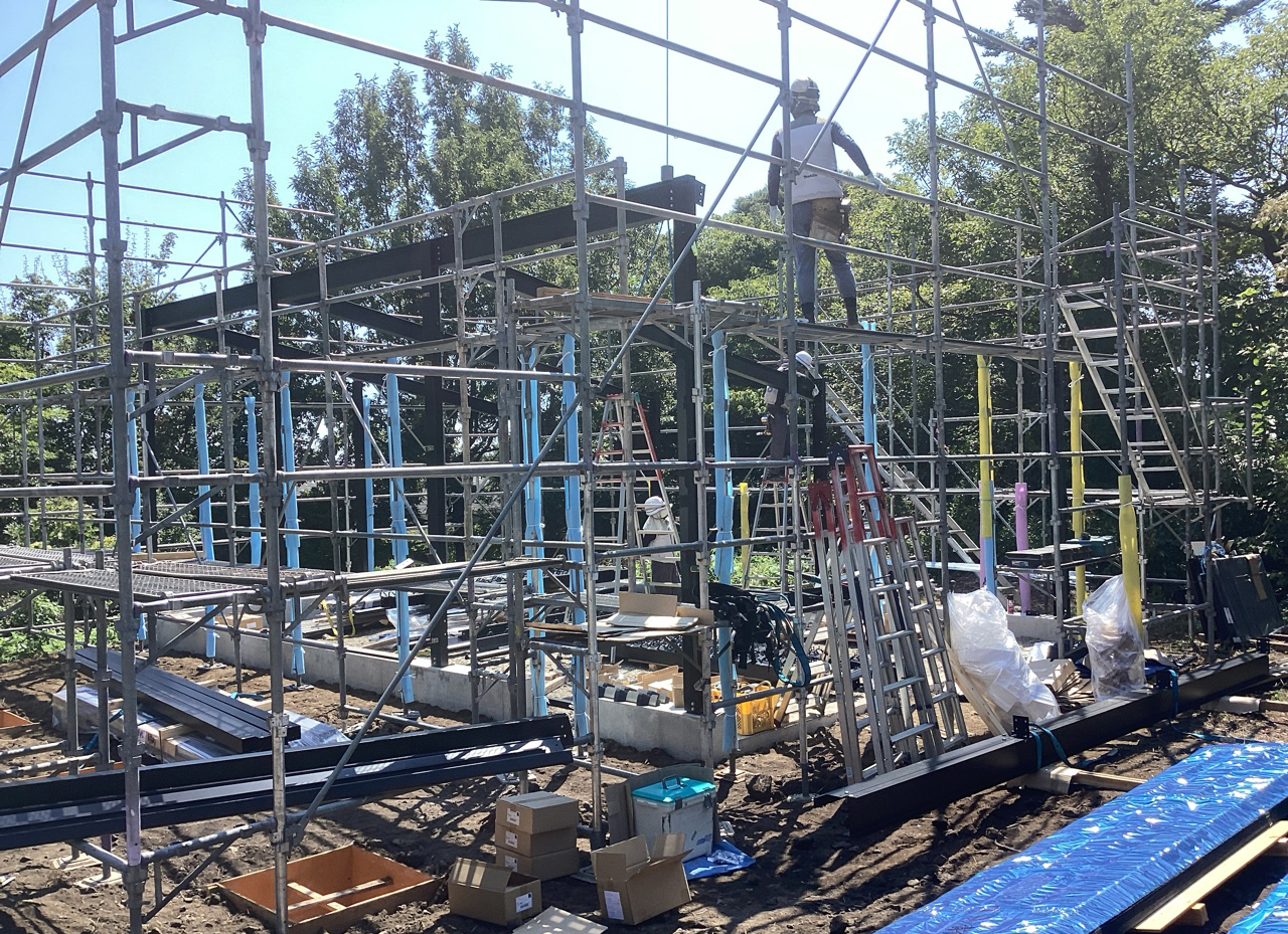 職人たちが連携しながら慎重にボルトを締め込み、建物の骨格が立ち上がっていきました。